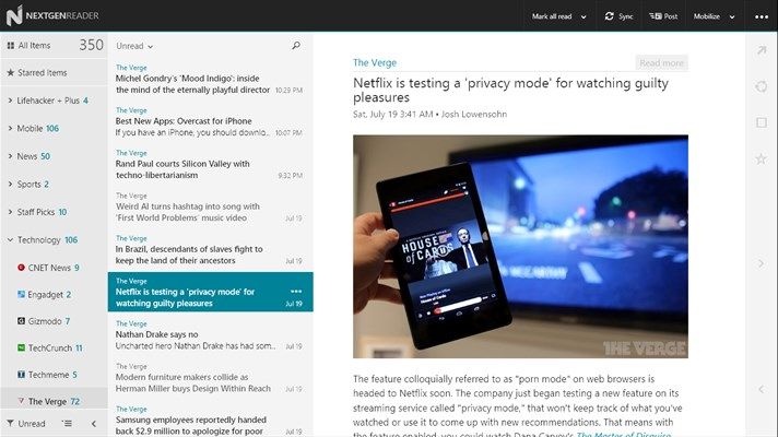 Nếu bạn theo dõi thông tin trải qua RSS, Nextgen Reader sẽ là một ứng dụng lý tưởng cho nhu yếu này. Với giao diện ngăn nắp và tương hỗ tốt cảm ứng hay bàn phím chuột truyền thống cuội nguồn, việc tìm kiếm và truy xuất những tin RSS trở nên thuận tiện hơn khi nào hết. Không những thế, bạn còn hoàn toàn có thể đính những kênh thông tin lên Start của Windows 10 để tiện theo dõi .