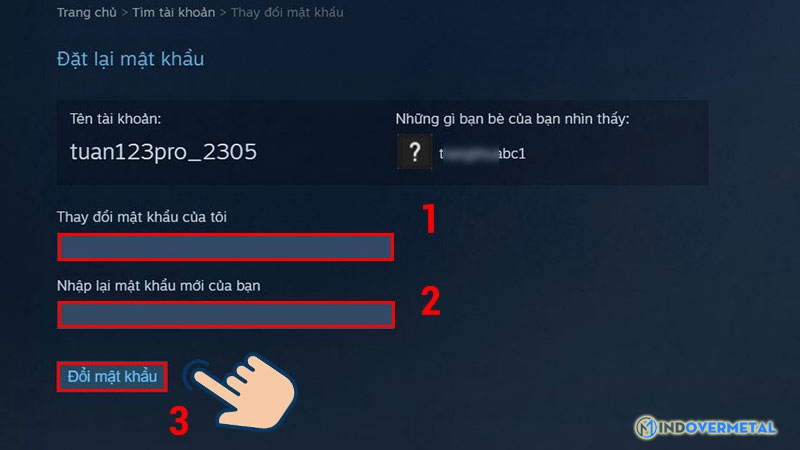 Bước 11. Nhập vào mật khẩu mới. → nhấn Đổi mật khẩu. Đến đây là bạn đã lấy lại được mật khẩu tài khoản Steam của mình.
