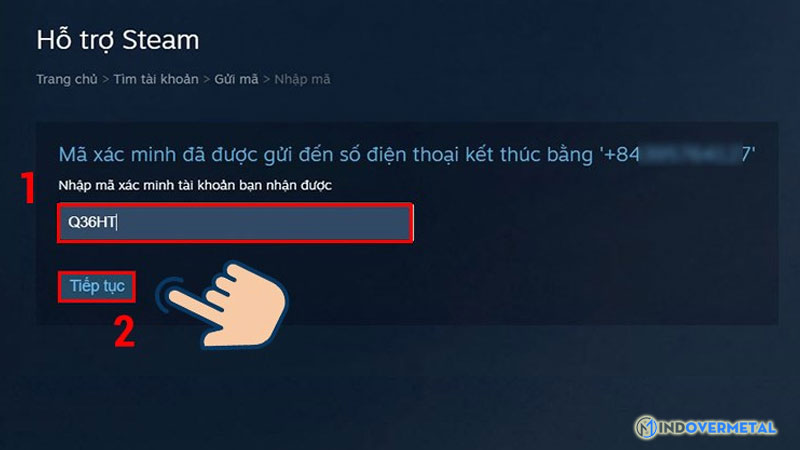 Bước 8. Lúc này mã xác minh sẽ được gửi đến số điện thoại của bạn. → nhập Mã xác minh. → Tiếp tục.