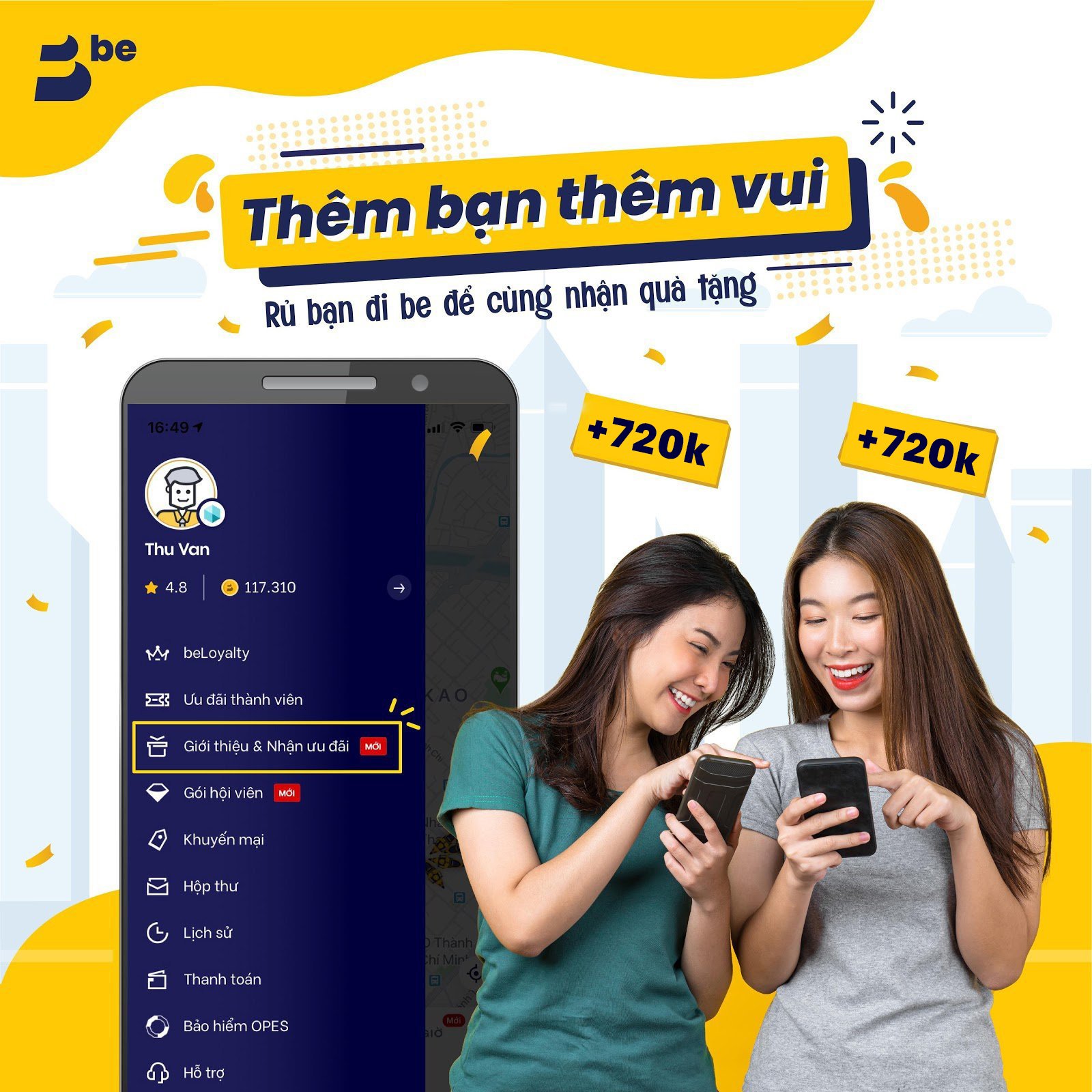 Thêm bạn thêm vui, giới thiệu Be rinh quà tặng dành cho cả hai! Cứ mỗi lần giới thiệu Be thành công: Bạn sẽ nhận được gói quà ưu đãi trị giá 720.000đ bao gồm :