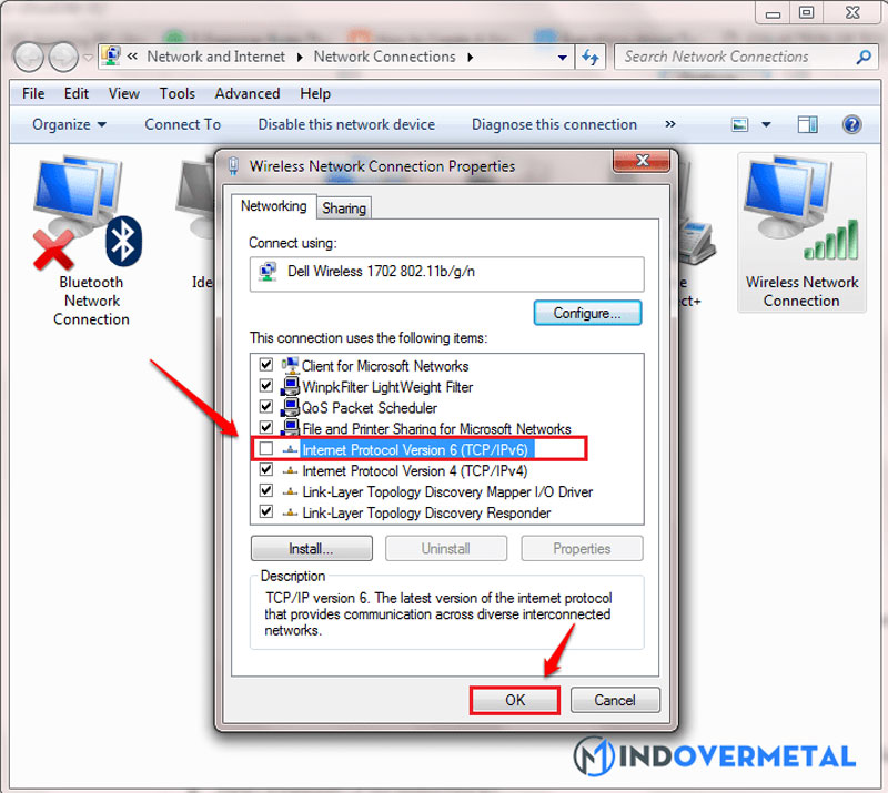 Xóa giao thức IPv6 trong Windows 7 Network Adapter Settings nếu không cần thiết. Nếu bạn không sử dụng IPv6 cả bên trong và bên ngoài hệ thống mạng máy tính. Thì hãy xóa bỏ nó để cải thiện hiệu suất mạng trong Windows 7.