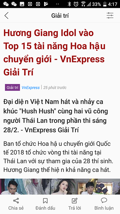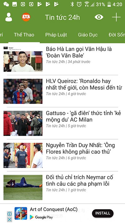 Đây là một ứng dụng update liên tục những tin thể thao, kinh tế tài chính, văn hóa truyền thống, vui chơi phối hợp với giao diện đọc báo thích mắt. Ngoài ra người dùng cũng hoàn toàn có thể tự chỉnh cỡ chữ, độ sáng tối, san sẻ bạn hữu … bởi tính năng cá thể hóa ứng dụng .
