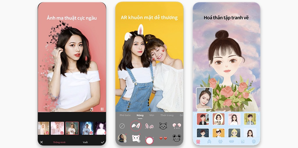 Meitu là ứng dụng máy ảnh làm đẹp tuyệt vời và hoàn hảo nhất để chỉnh sửa hình ảnh của bạn. Hiệu ứng đẹp cho ảnh của bạn, thêm văn bản, bộ lọc, làm mờ nền, hoàn toàn có thể tự động hóa biến chân dung của bạn thành hình minh họa, Mosaic, ghép ảnh, … đều rất dễ sử dụng, màu sắc ngọt ngào hợp với giới trẻ .