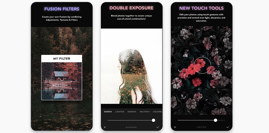 Với Afterlight bạn sẽ thực sự bị chinh phục bởi sự hoàn hảo của nó, là 1 ứng dụng chỉnh sửa nhanh chóng và đơn giản, các công cụ mạnh mẽ và linh hoạt đáp ứng ngaynhững gì bạn muốn trong vài giây: 15 công cụ điều chỉnh, 59 filters, 66 textures, frames, công cụ cropping & transforming, 77 khung hình đơn giản và có thể điều chỉnh khác nhau, được ghép nối hoàn hảo với Instagram.