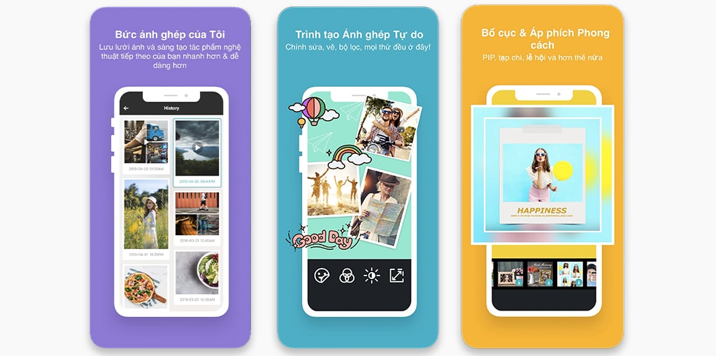 Ứng dụng Photo Grid cho Android, iPhone cũng là ứng dụng được nhìn nhận khá cao, giúp bạn tạo lên những bức ảnh cắt dán ấn tượng và đẹp mắt theo từng style bạn muốn. Thậm chí bạn sẽ giật mình với những công cụ mà ứng dụng này có như thêm nhạc .