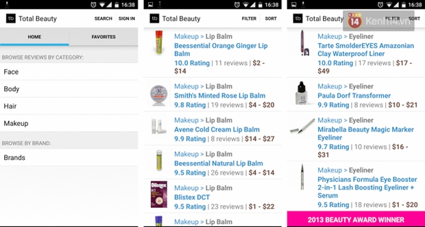Nếu bạn đang cần mua mỹ phẩm mà không biết mình nên mua loại nào tốt và phù hợp, hãy sử dụng ứng dụng Beauty Product Reviews. Ứng dụng này tập hợp hơn 70.000 sản phẩm trên thế giới (từ mỹ phẩm chăm sóc da, chăm sóc tóc, chống lão hóa, trang điểm…) với hơn 280.000 đánh giá tin cậy từ người dùng trên thế giới.