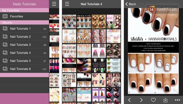Nails Tutorials là ứng dụng chuyên biệt, tập trung hướng dẫn cho phái đẹp những thủ thuật làm móng cặn kẽ nhất. Hiện ứng dụng này có hơn 600 bài hướng dẫn khác nhau để các chị em có thể học hỏi và thực hành để bộ móng của mình trở nên lộng lẫy hơn. Bên cạnh đó, ứng dụng cho phép tải về các hình ảnh mẫu chất lượng cao lưu trong điện thoại để khi cần có thể mở ra xem ngay tức khắc mà không cần phải kết nối mạng internet.